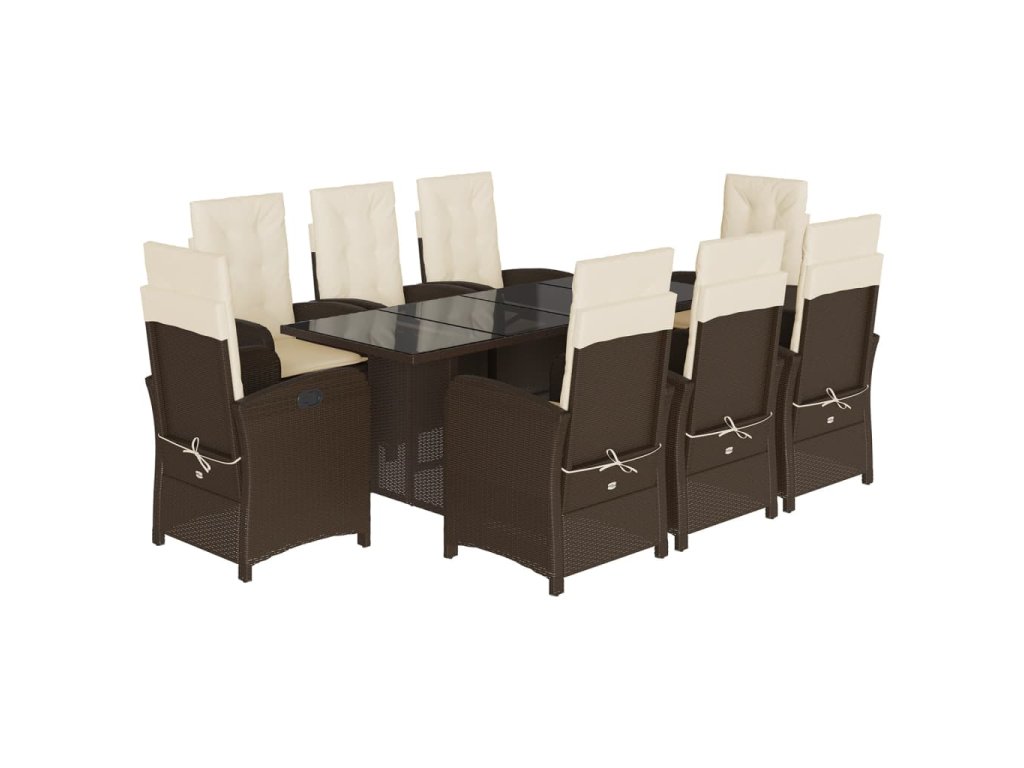 9dílný zahradní jídelní set s poduškami hnědý polyratan 3212255