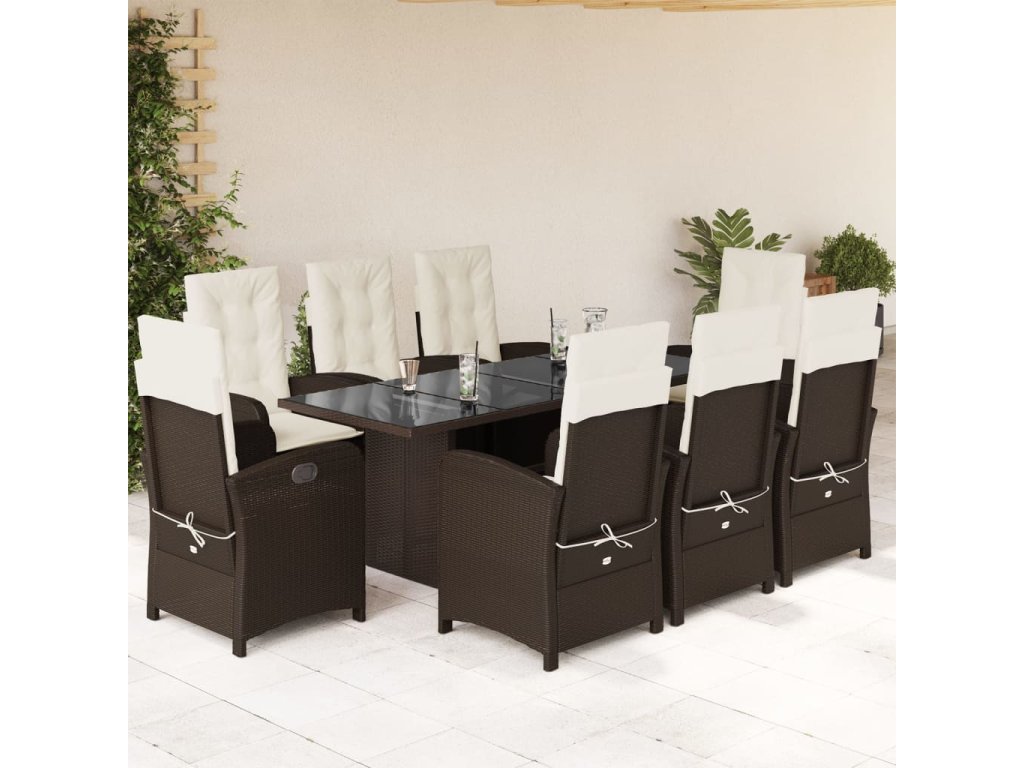 9dílný zahradní jídelní set s poduškami hnědý polyratan 3212256