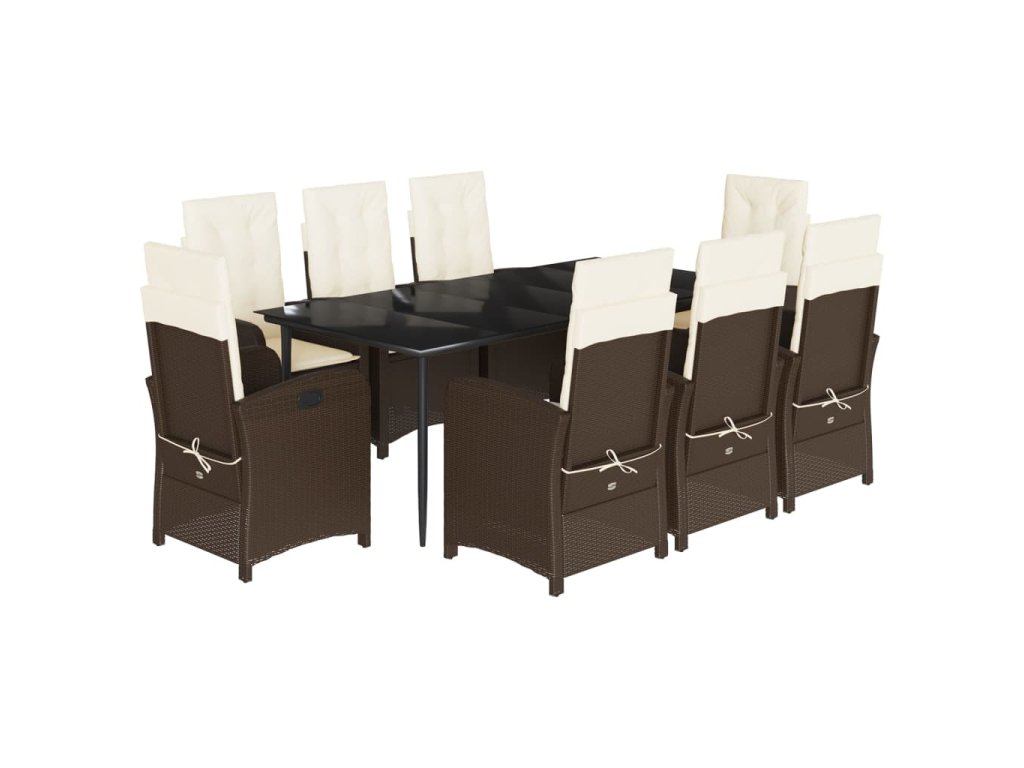 9dílný zahradní jídelní set s poduškami hnědý polyratan 3212338