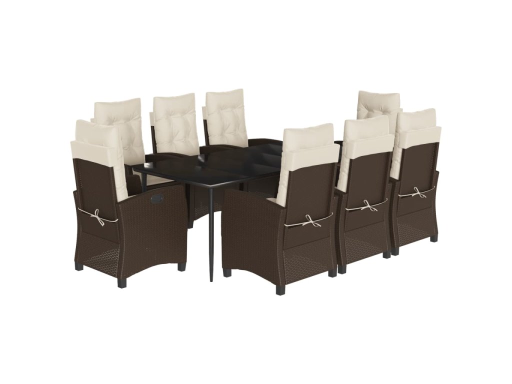 9dílný zahradní jídelní set s poduškami hnědý polyratan 3212770