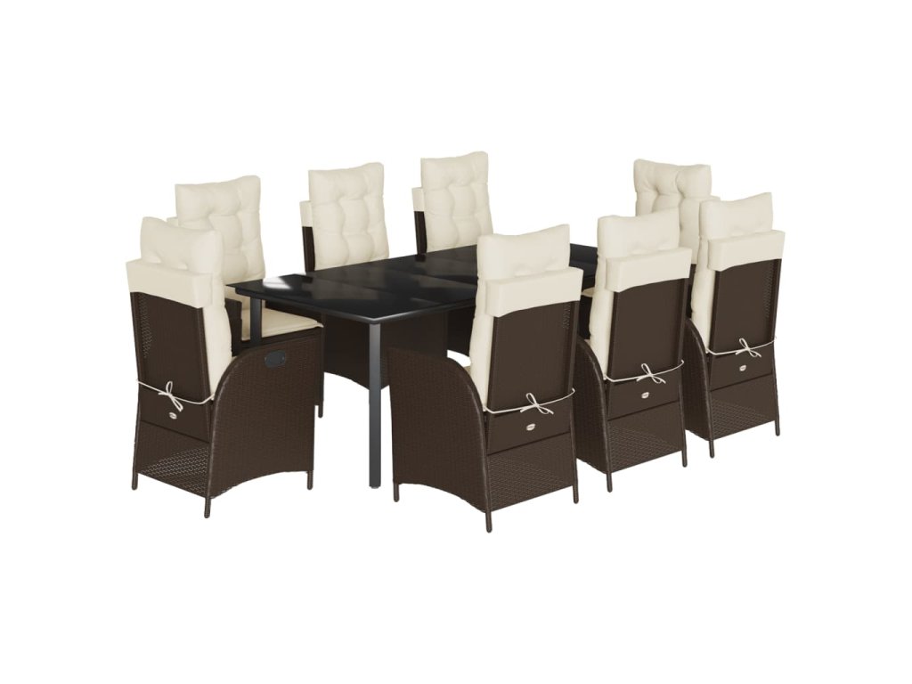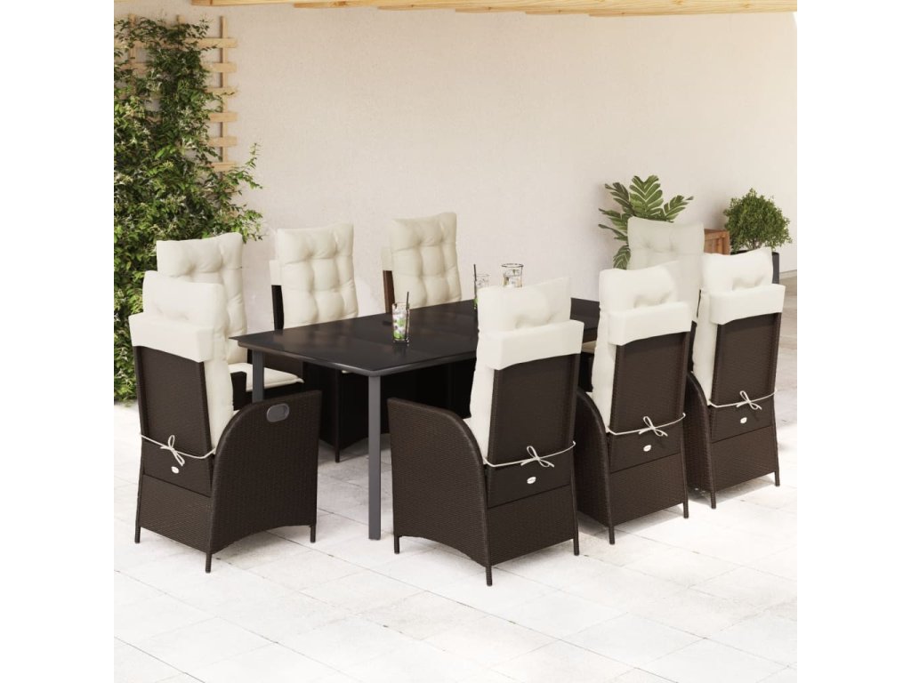 9dílný zahradní jídelní set s poduškami hnědý polyratan 3213213
