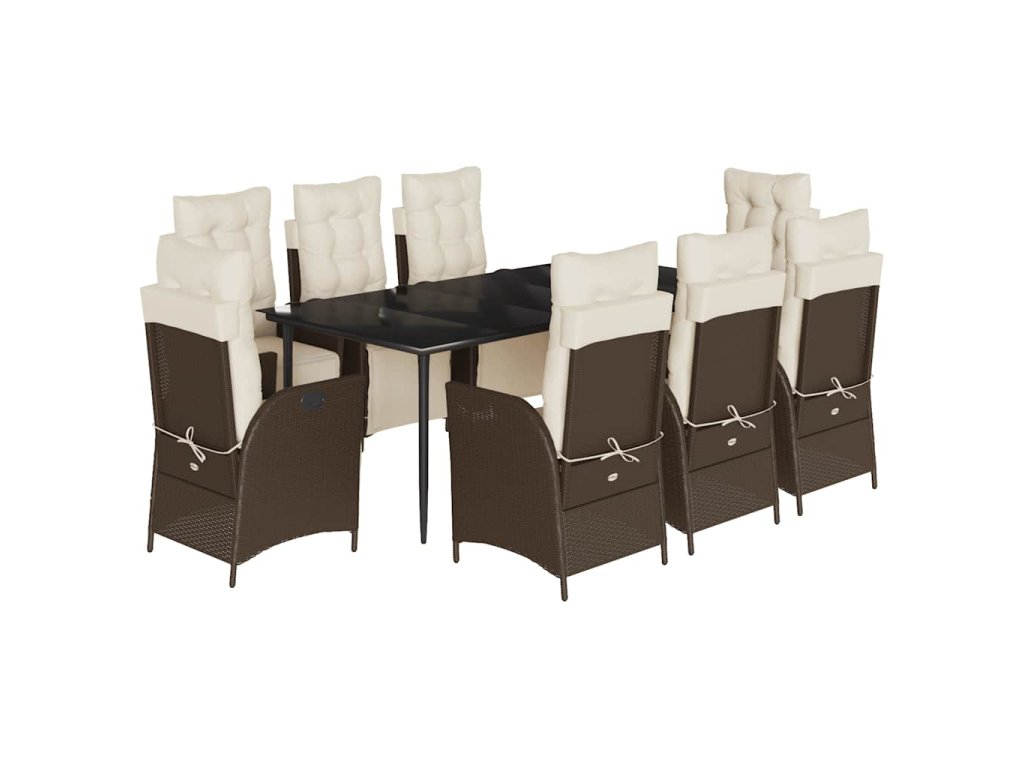 9dílný zahradní jídelní set s poduškami hnědý polyratan 3213412
