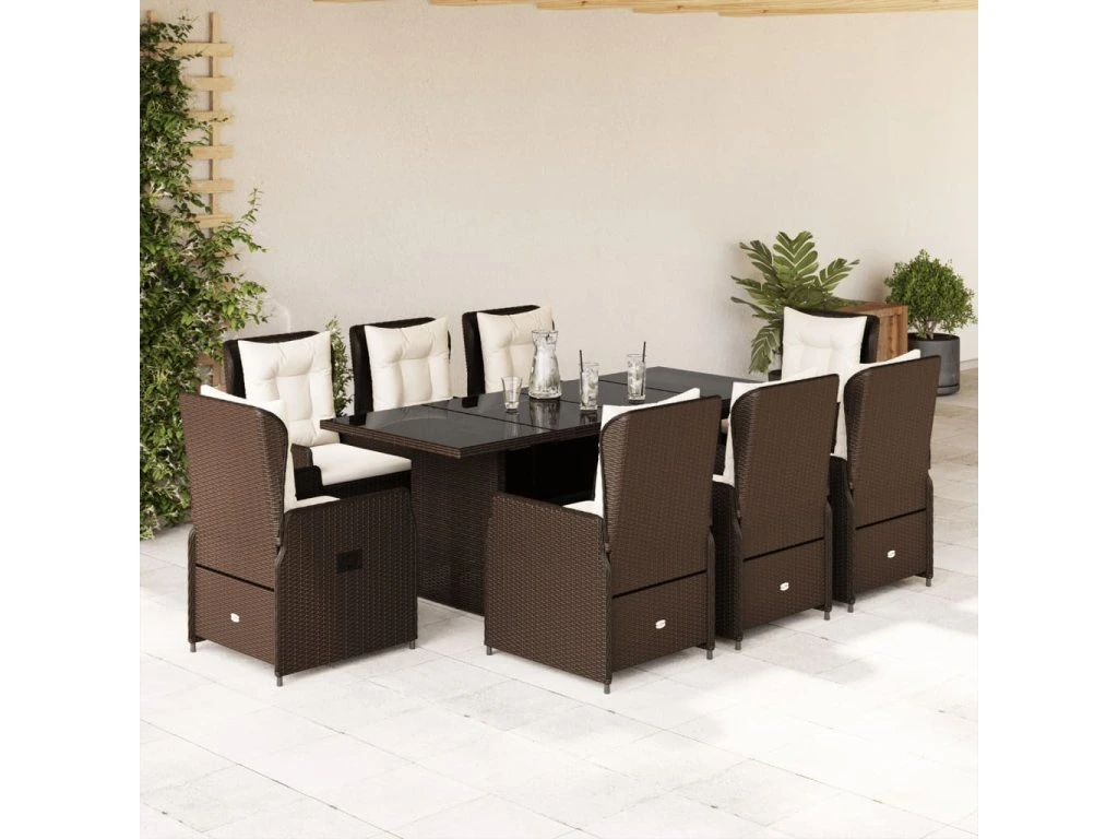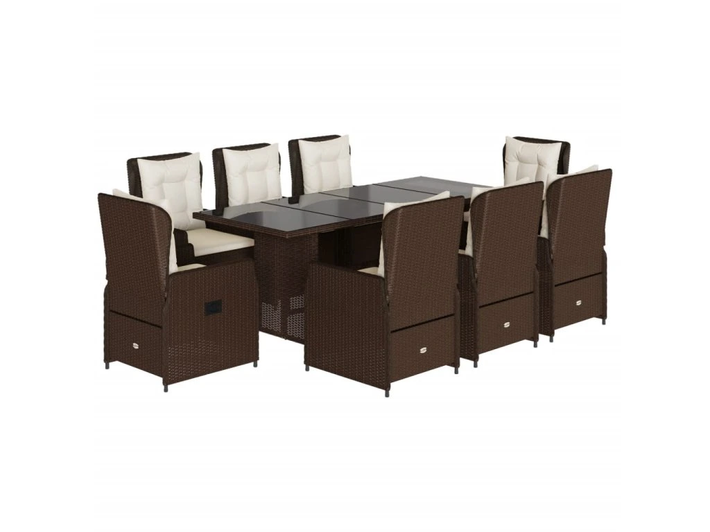9dílný zahradní jídelní set s poduškami hnědý polyratan 3262782