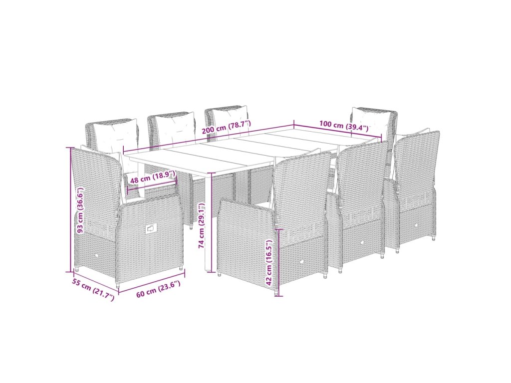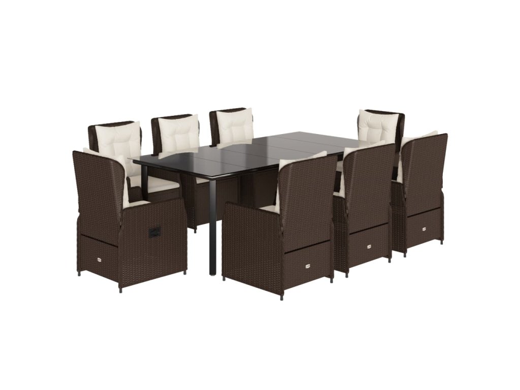 9dílný zahradní jídelní set s poduškami hnědý polyratan 3262853