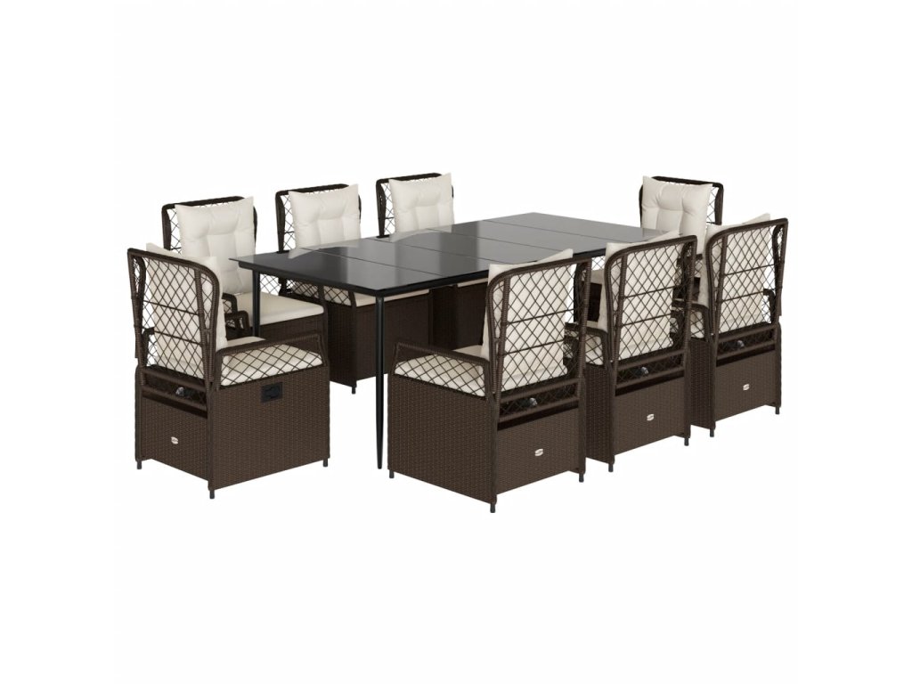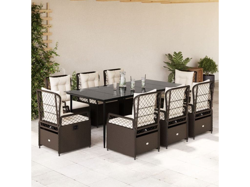9dílný zahradní jídelní set s poduškami hnědý polyratan 3262977