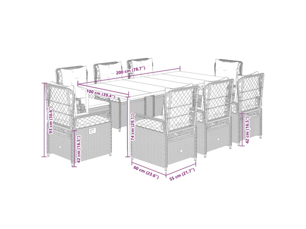 - Pohodlné sezení: Tento venkovní nábytek se silně polstrovanými poduškami a polštáři nabízí pohodlné sezení.