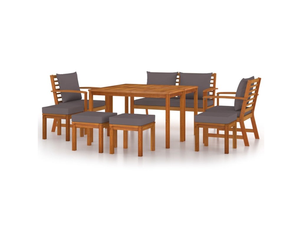 Tento dřevěný zahradní jídelní set s poduškami se pyšní nadčasovým designem a na vaši terasu, verandu či zahradu vnese nádech rustikálního kouzla.