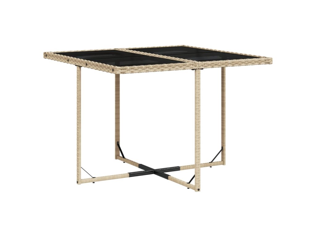 - Stabilní a snadno čistitelná stolní deska: Tento zahradní stůl má desku z tvrzeného skla, která je stabilní, odolná a snadno se čistí vlhkým hadříkem.