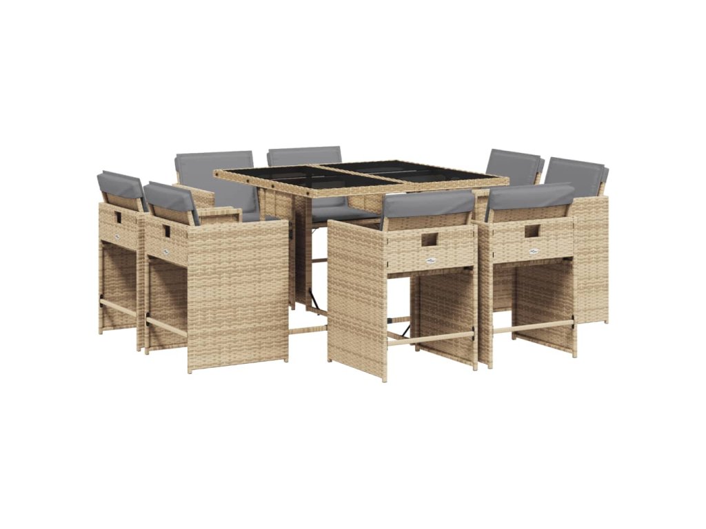 9dílný zahradní jídelní set s poduškami mix béžové polyratan 3211200