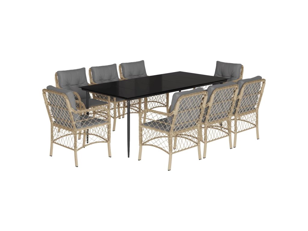 9dílný zahradní jídelní set s poduškami mix béžové polyratan 3212158