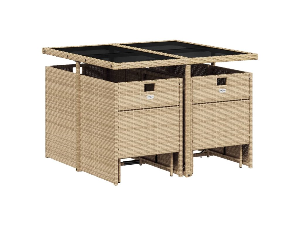 - Materiál: PE ratan, práškově lakovaná ocel, tvrzené sklo