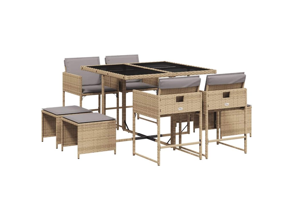 9dílný zahradní jídelní set s poduškami mix béžové polyratan 3278087