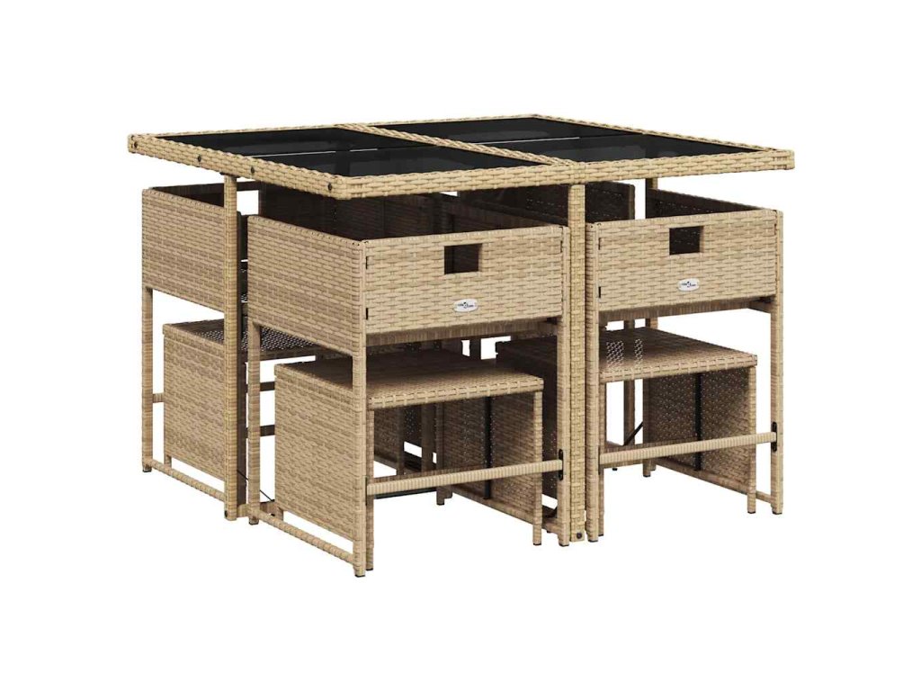 - Materiál: PE ratan, práškově lakovaná ocel, tvrzené sklo