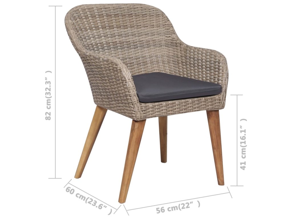 Jídelní souprava je vyrobená z vysoce kvalitního polyratanu, který skvěle odolává klimatickým vlivům. Je tudíž velmi odolná, snadno se čistí a je jako dělaná pro každodenní venkovní použití. Ocelové rámy s práškovým nástřikem zajišťují výtečnou pevnost a odolnost zahradního nábytku. Jeho konstrukce je však zároveň lehká, takže můžete všechny díly soupravy bez obtíží přesouvat. Silně polstrované podušky na křesla vám poskytnou maximální pohodlí. Potahy podušek můžete stáhnout a vyprat.