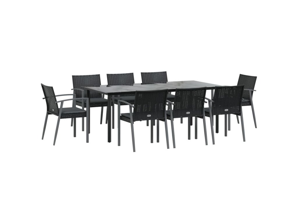 9dílný zahradní jídelní set s poduškami polyratan a ocel 3187000