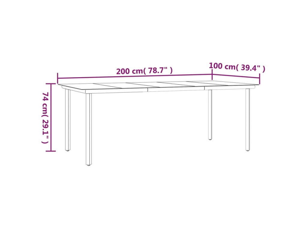 - Rozměry: 200 x 100 x 74 cm (D x Š x V)