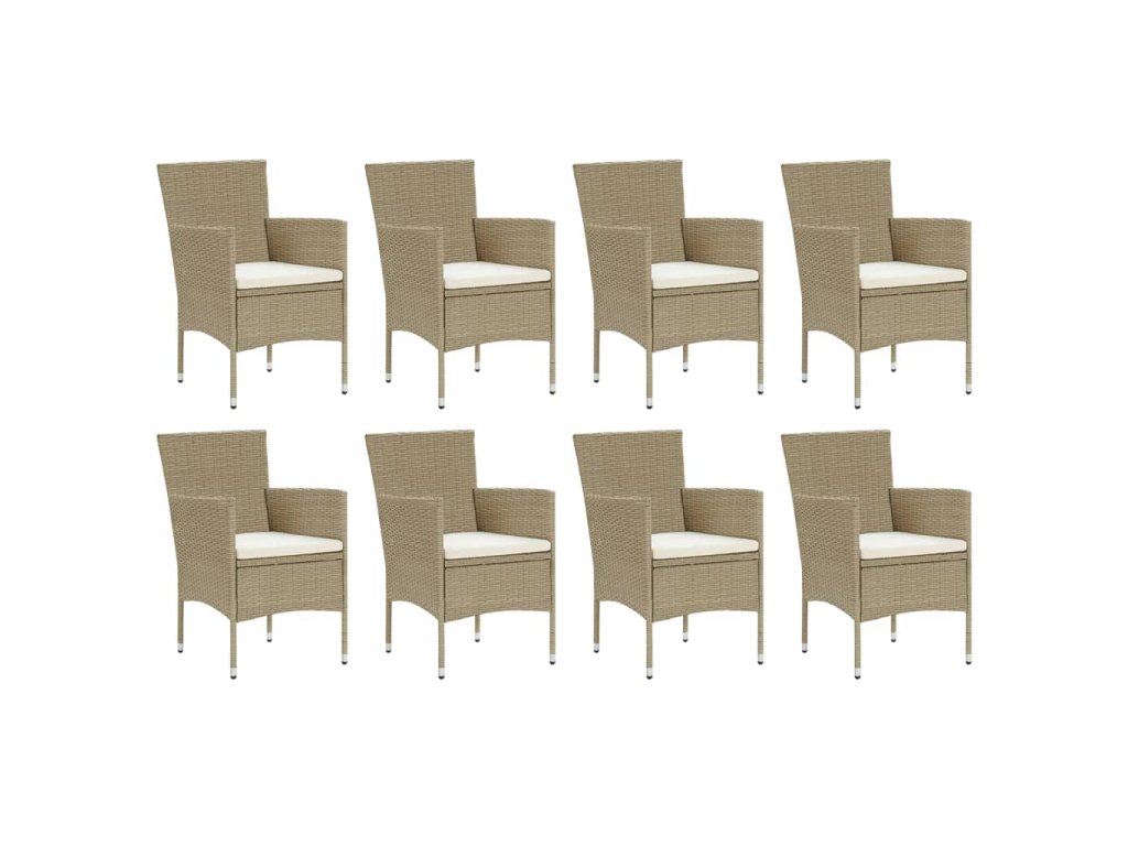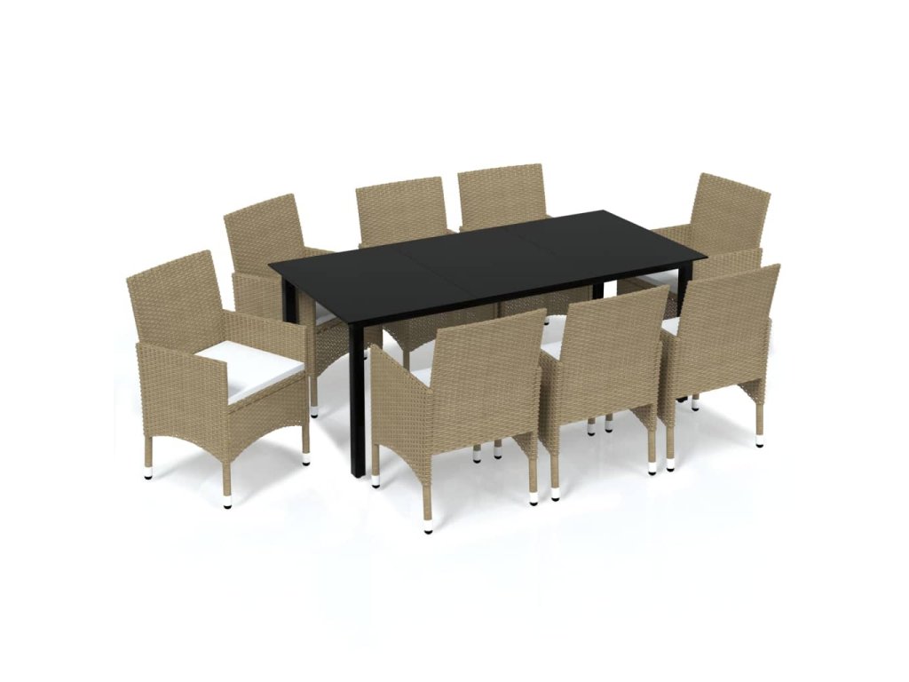 9dílný zahradní jídelní set s poduškami polyratan béžový 3094990
