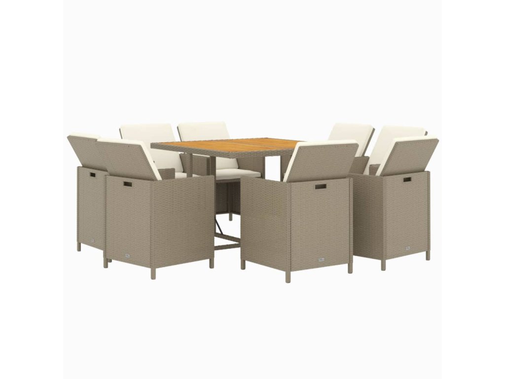 9dílný zahradní jídelní set s poduškami polyratan béžový 3095528