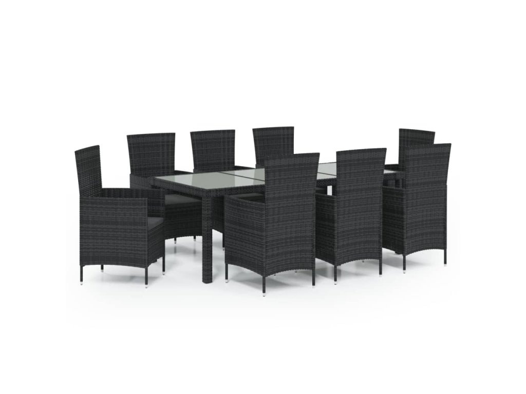 9dílný zahradní jídelní set s poduškami polyratan černý 3094870