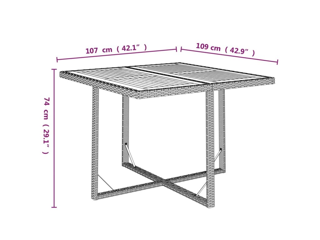 - Rozměry stolu: 109 x 107 x 74 cm (D x Š x V)
