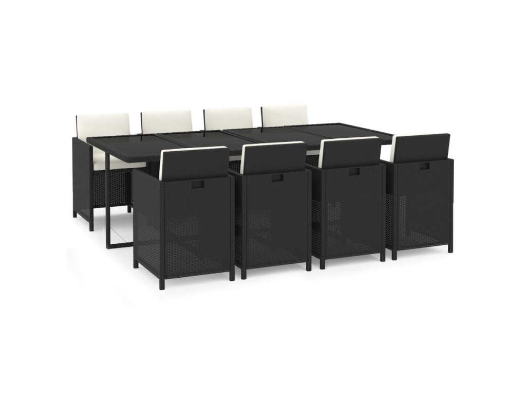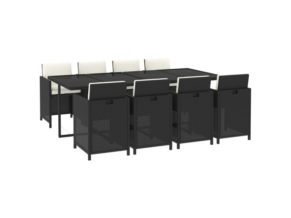 9dílný zahradní jídelní set s poduškami polyratan černý 3095557