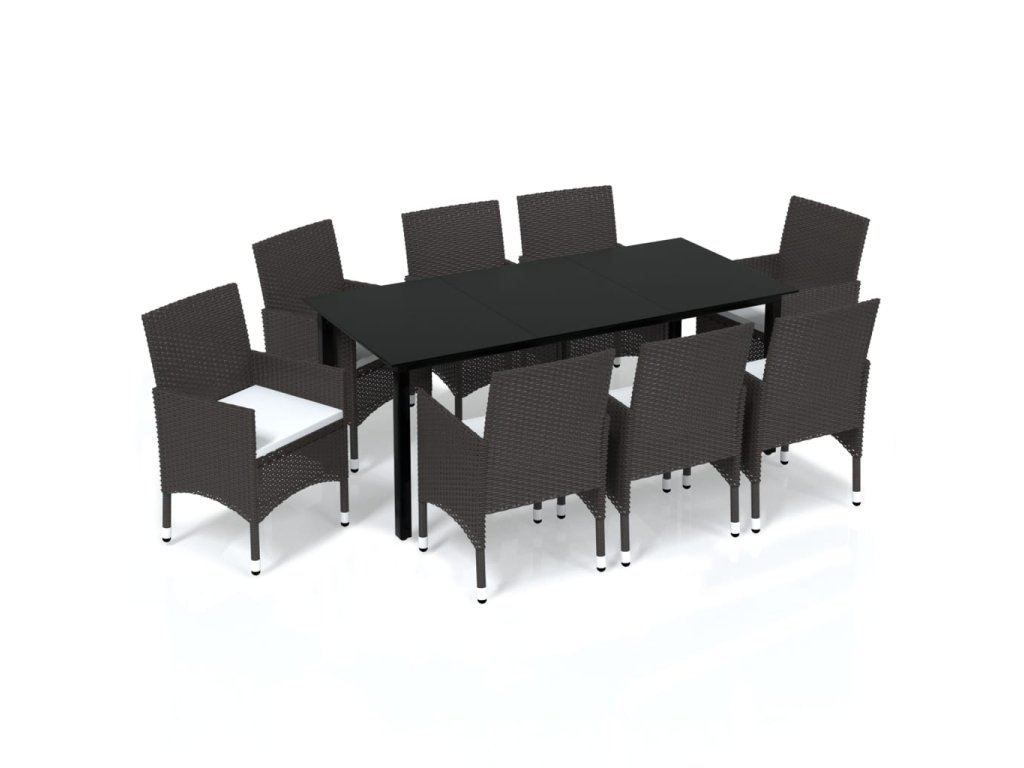 9dílný zahradní jídelní set s poduškami polyratan hnědý 3094996