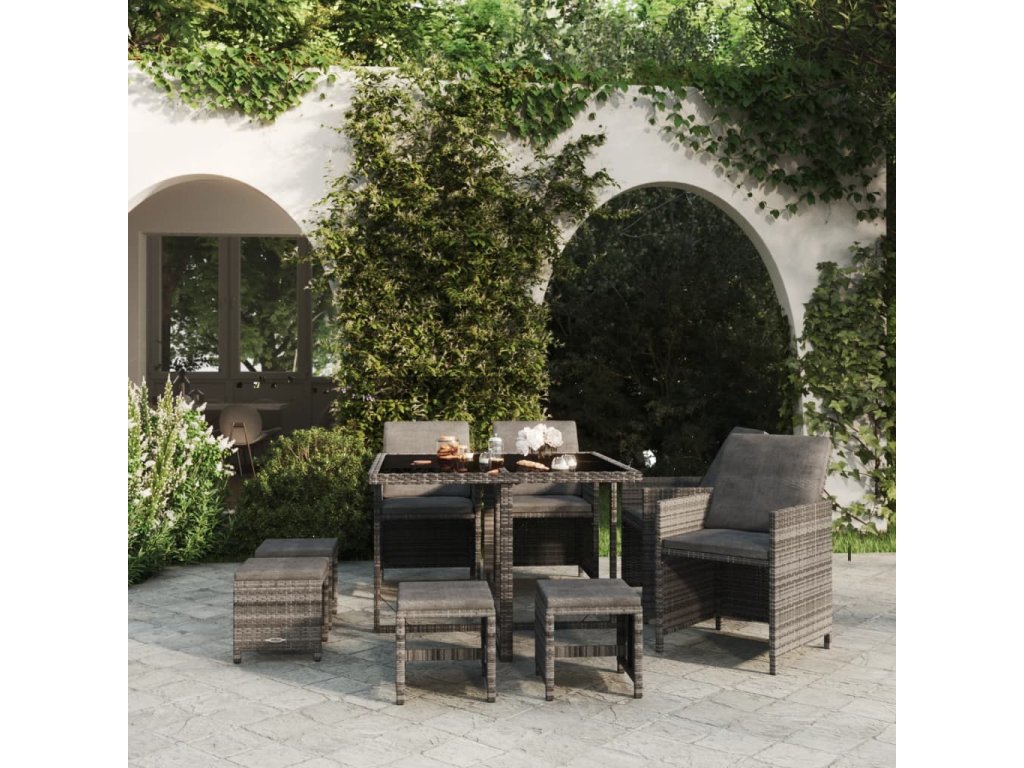 9dílný zahradní jídelní set s poduškami polyratan šedý 3095511