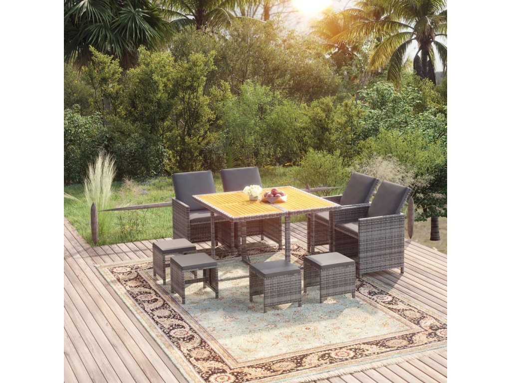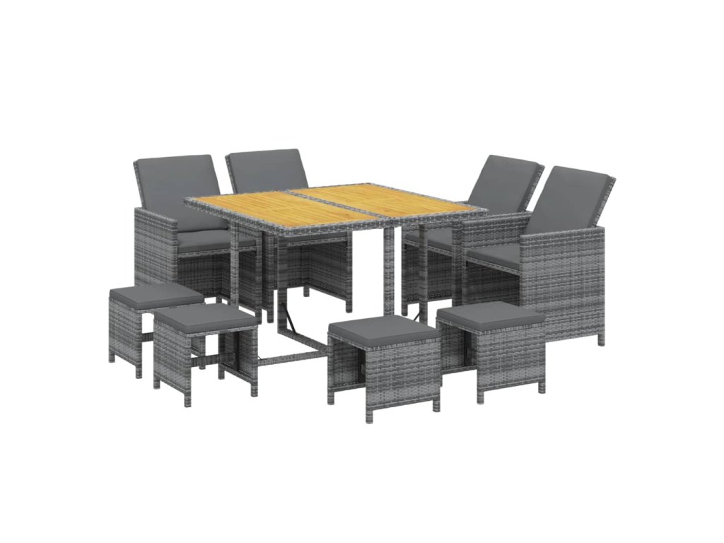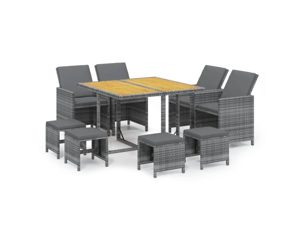 9dílný zahradní jídelní set s poduškami polyratan šedý 3095526