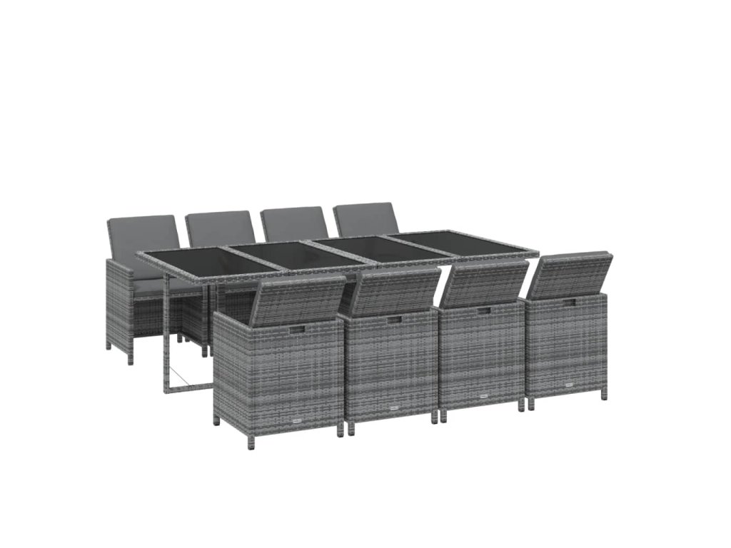 9dílný zahradní jídelní set s poduškami polyratan šedý 3095563