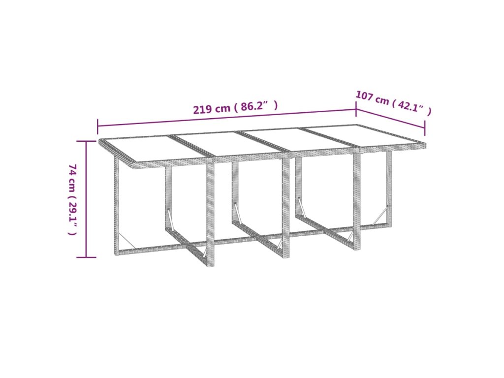 - Celkové rozměry stolu: 219 x 107 x 74 cm (D x Š x V)
