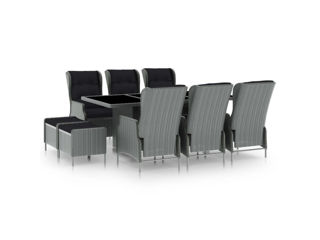 9dílný zahradní jídelní set s poduškami polyratan světle šedý 3060159