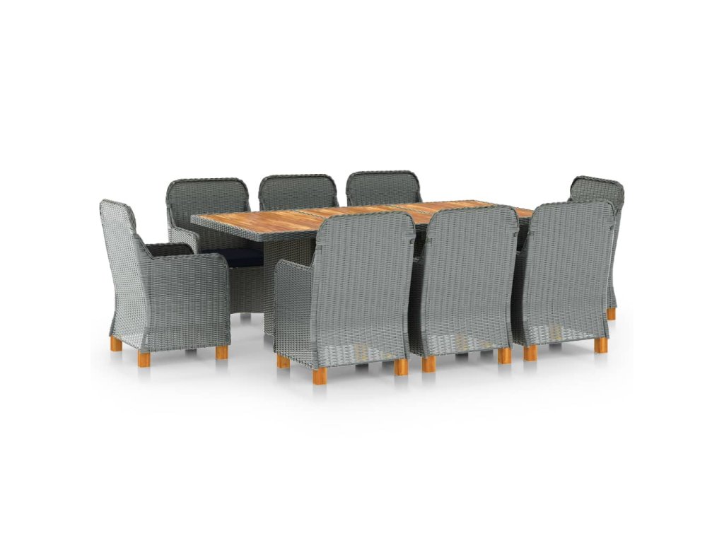 9dílný zahradní jídelní set s poduškami polyratan světle šedý 3060176