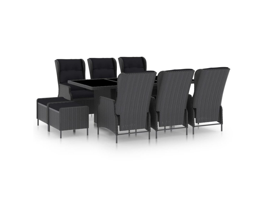 9dílný zahradní jídelní set s poduškami polyratan tmavě šedý 3060157