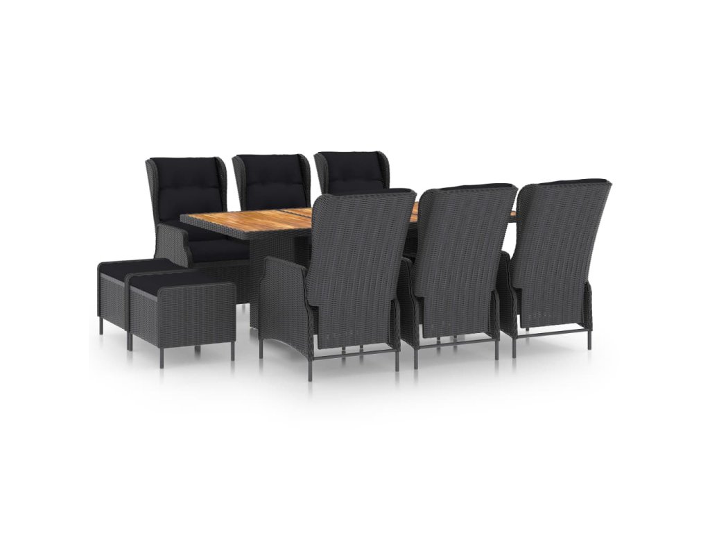 9dílný zahradní jídelní set s poduškami polyratan tmavě šedý 3060158