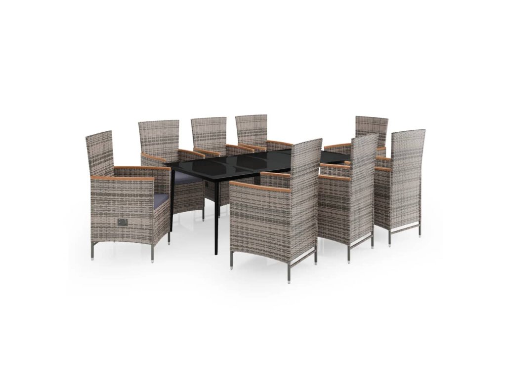 9dílný zahradní jídelní set s poduškami šedý 3099454