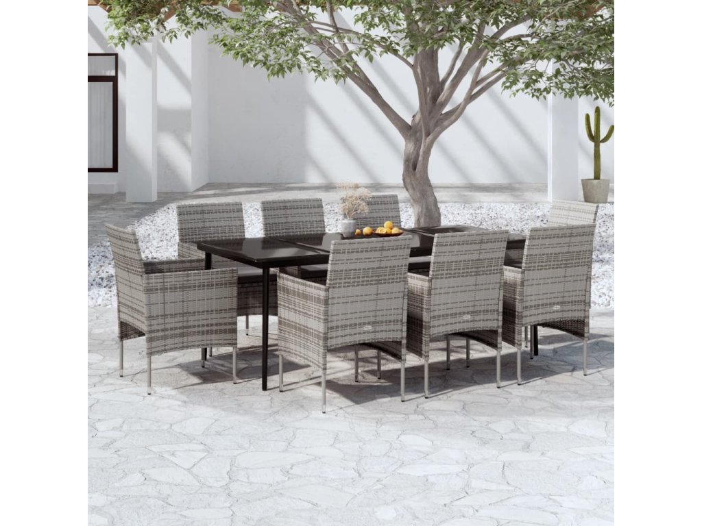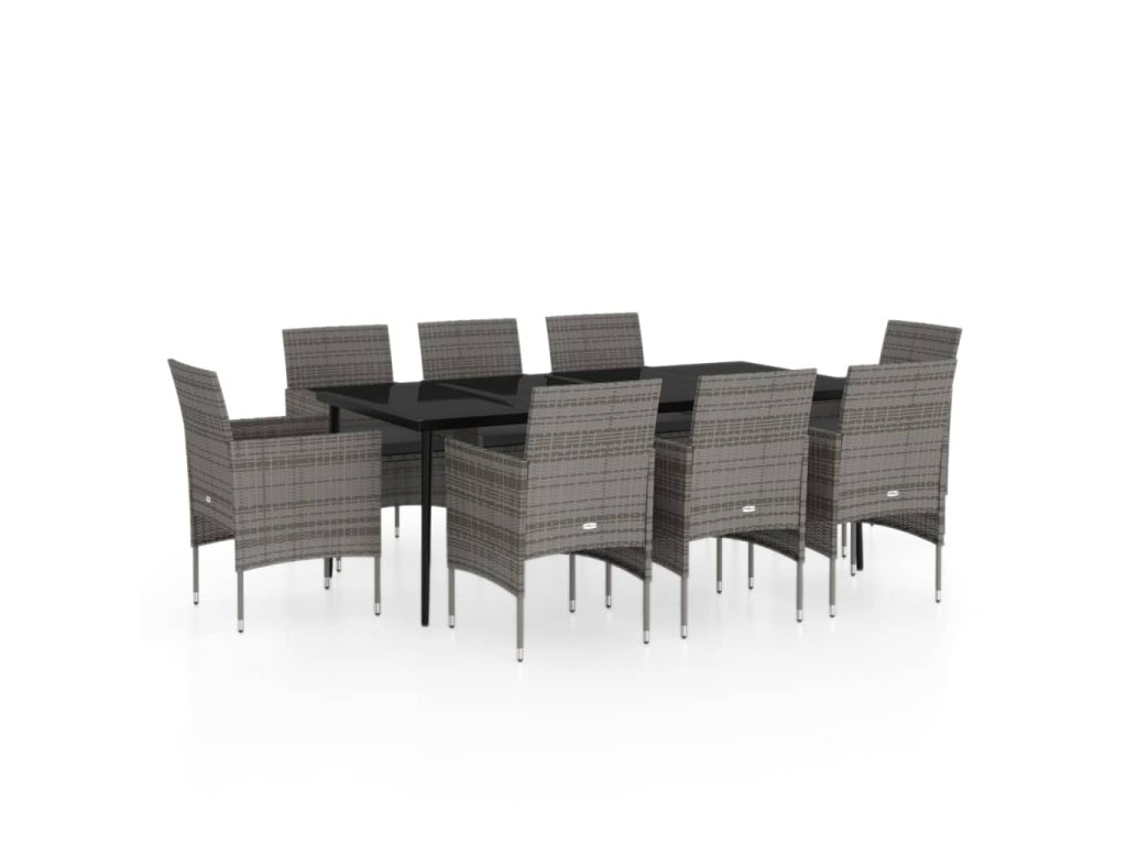 9dílný zahradní jídelní set s poduškami šedý a černý 3099316