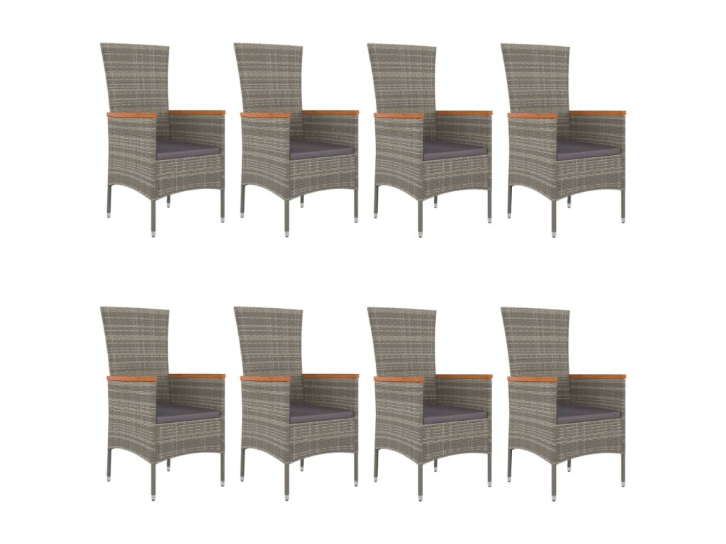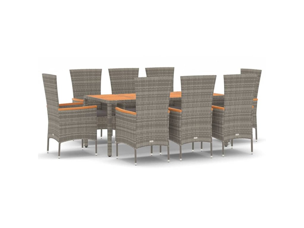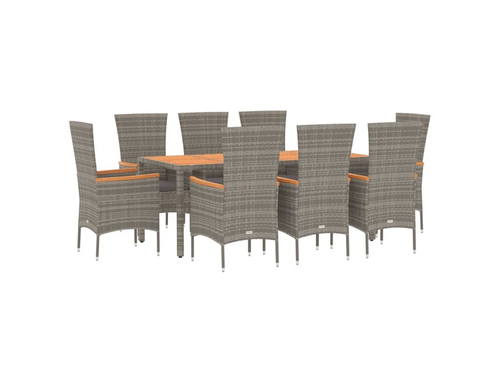 9dílný zahradní jídelní set s poduškami šedý polyratan 3157543