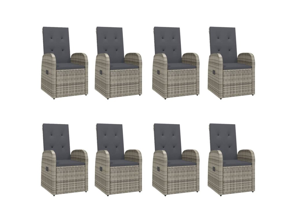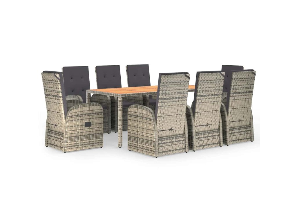 9dílný zahradní jídelní set s poduškami šedý polyratan 3157589