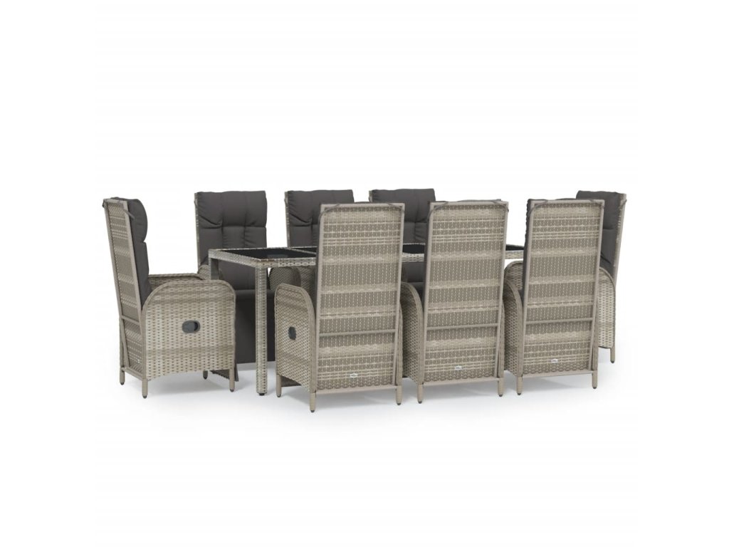 9dílný zahradní jídelní set s poduškami šedý polyratan 3185034