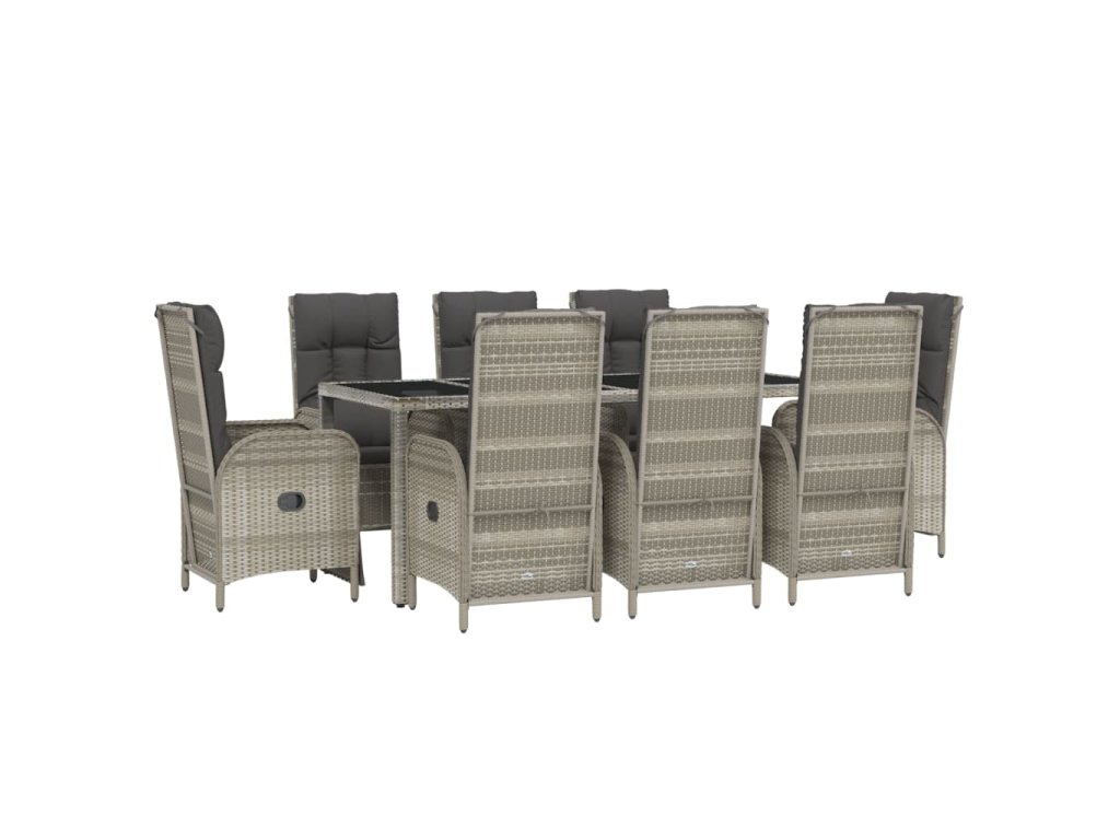 9dílný zahradní jídelní set s poduškami šedý polyratan 3185037