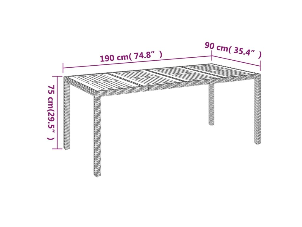 - Materiál: PE ratan, práškově lakovaná ocel, masivní akáciové dřevo s olejovou povrchovou úpravou