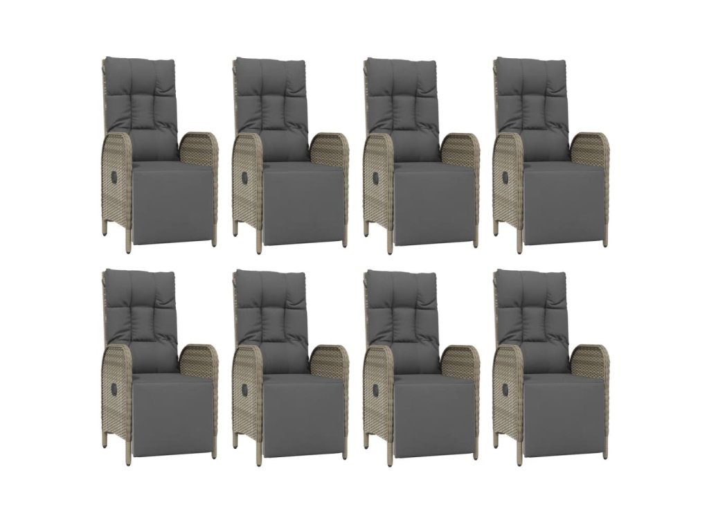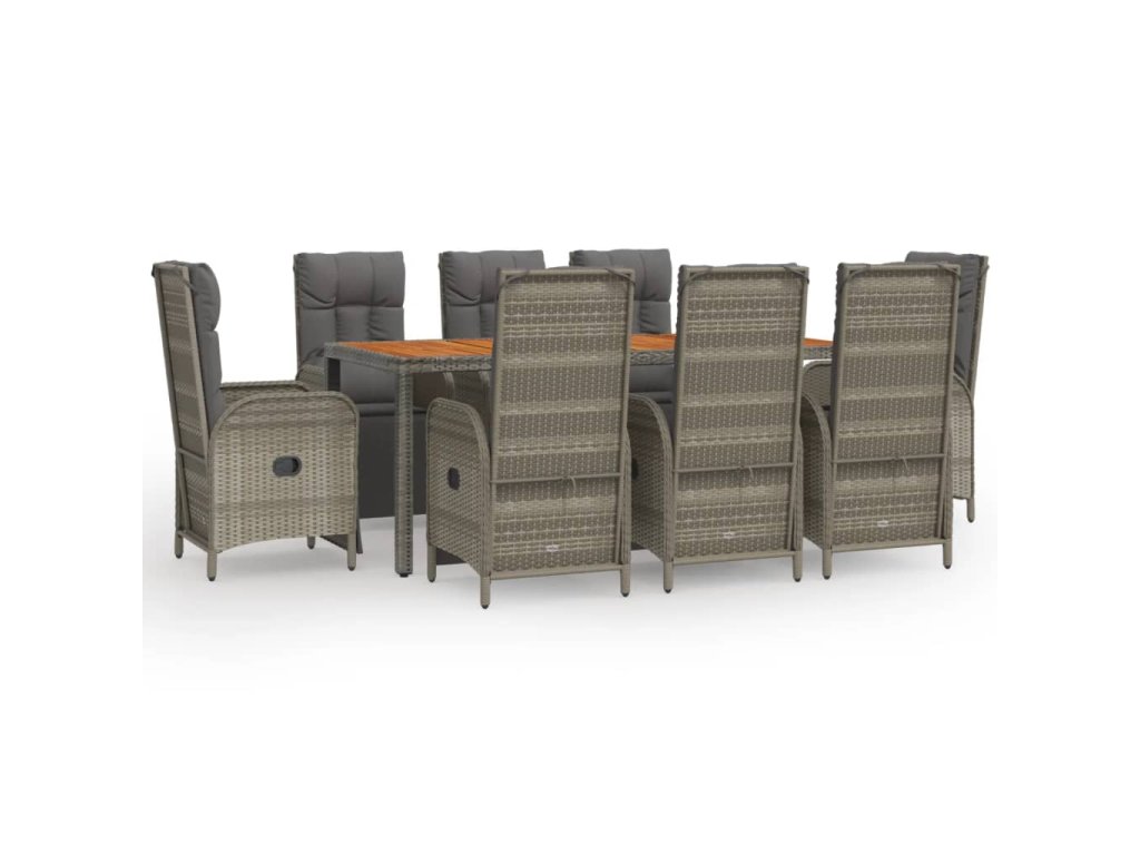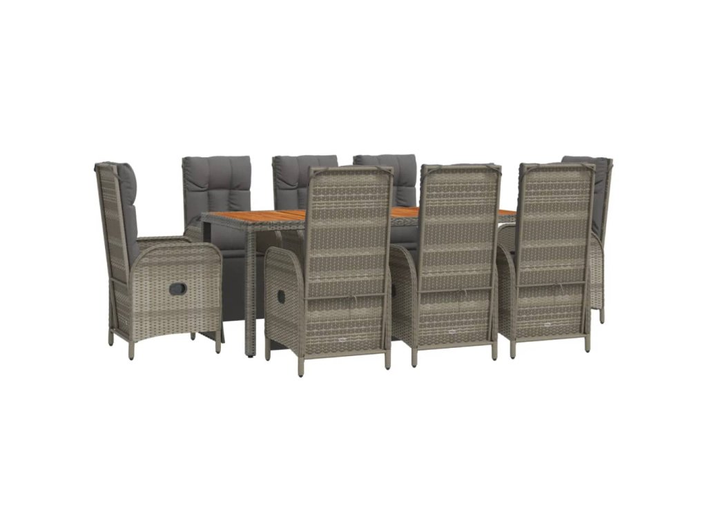 9dílný zahradní jídelní set s poduškami šedý polyratan 3185049