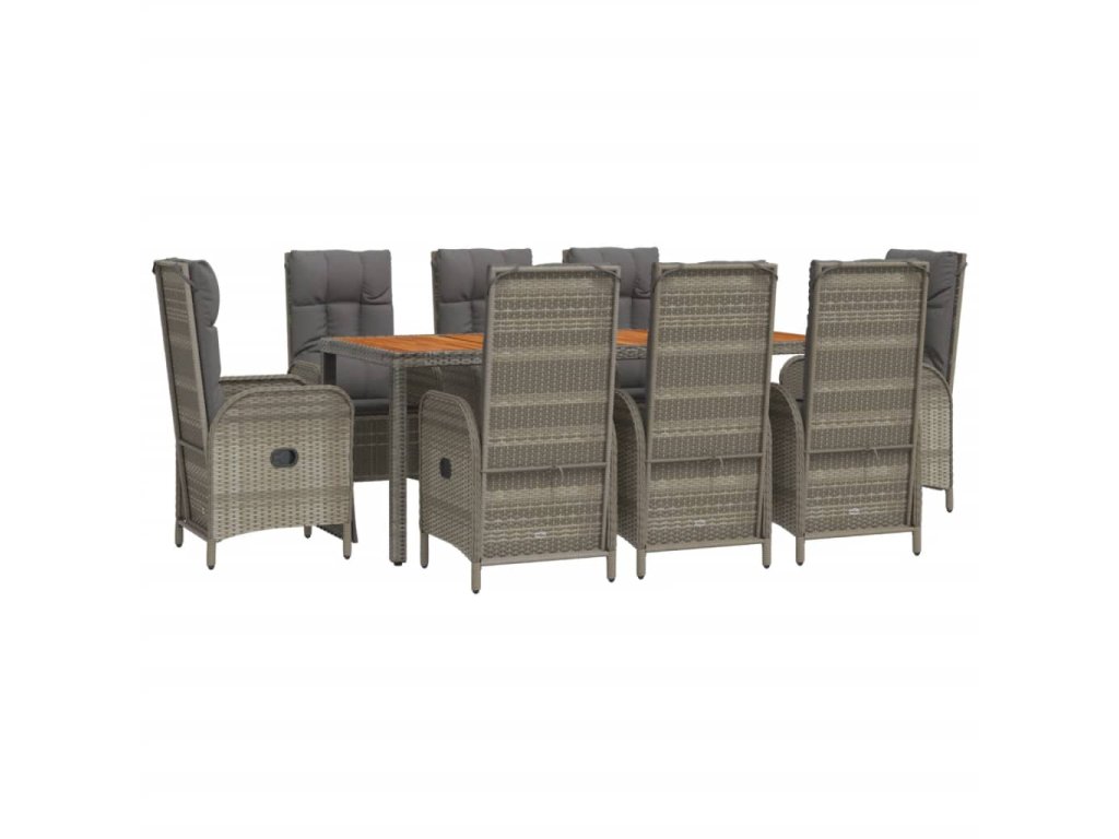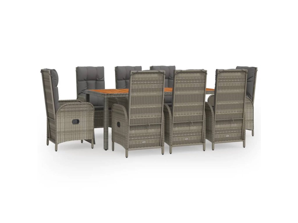 9dílný zahradní jídelní set s poduškami šedý polyratan 3185052