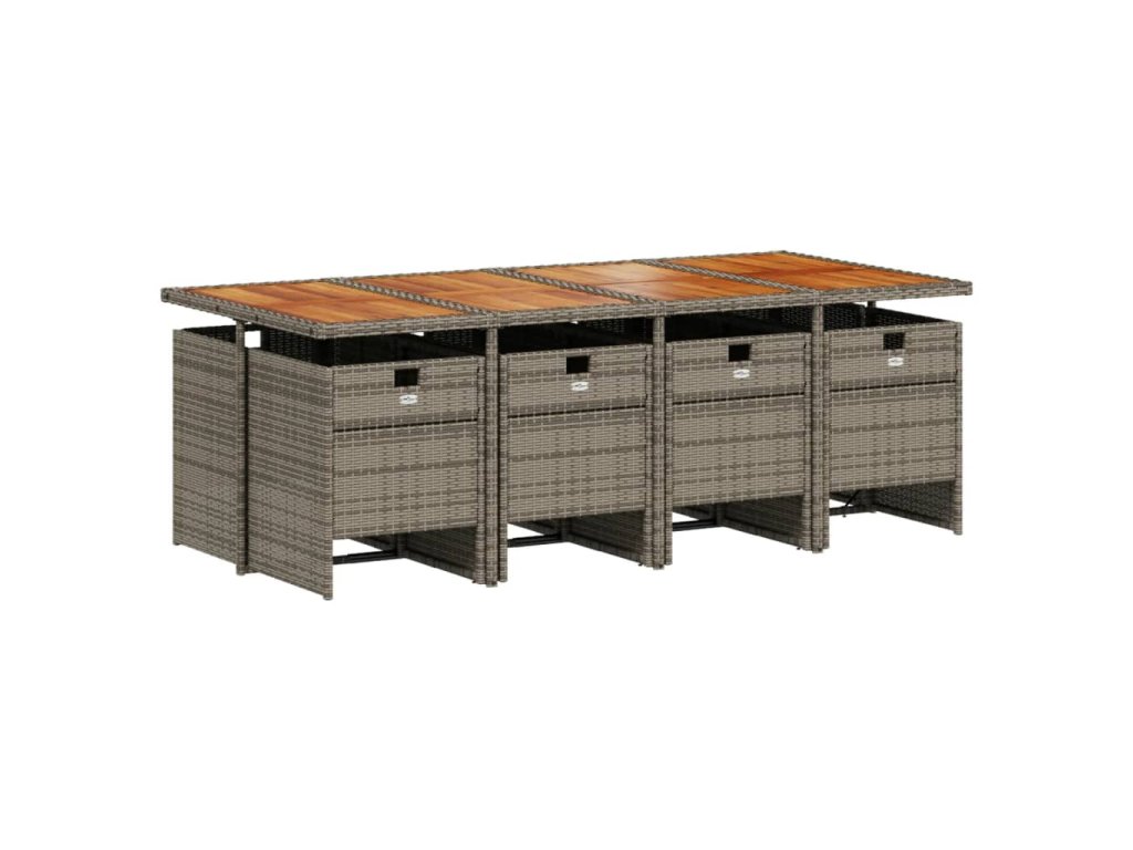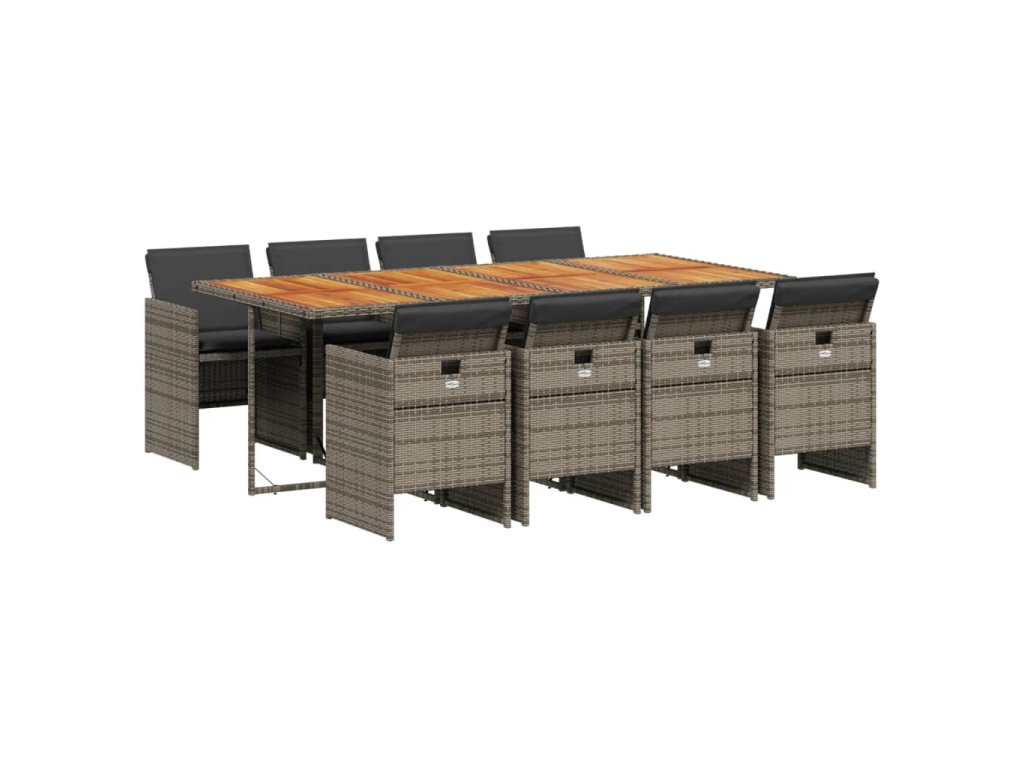 9dílný zahradní jídelní set s poduškami šedý polyratan 3210566