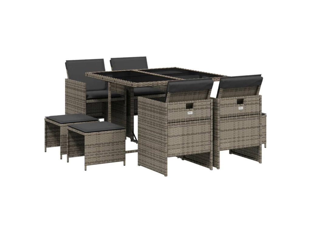 9dílný zahradní jídelní set s poduškami šedý polyratan 3210596