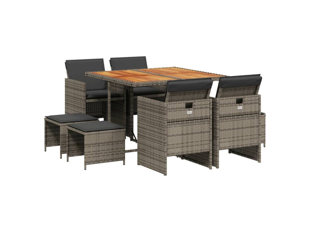 9dílný zahradní jídelní set s poduškami šedý polyratan 3210602