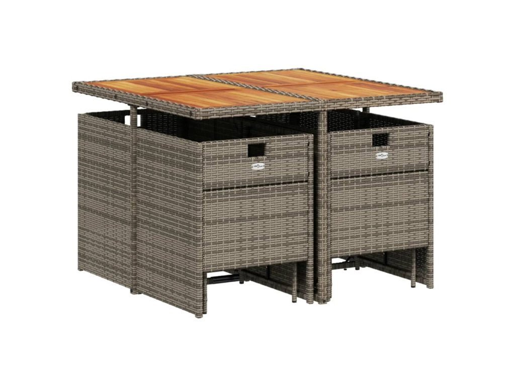 - Materiál: PE ratan, práškově lakovaná ocel, masivní akáciové dřevo s olejovou povrchovou úpravou