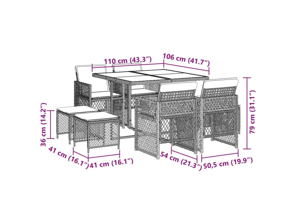 Tento zahradní jídelní set je skvělou volbou pro stolování pod širým nebem nebo jen tak pro odpočívání na zahradě, dvorku či terase.