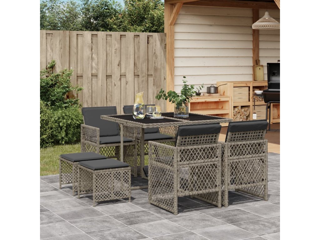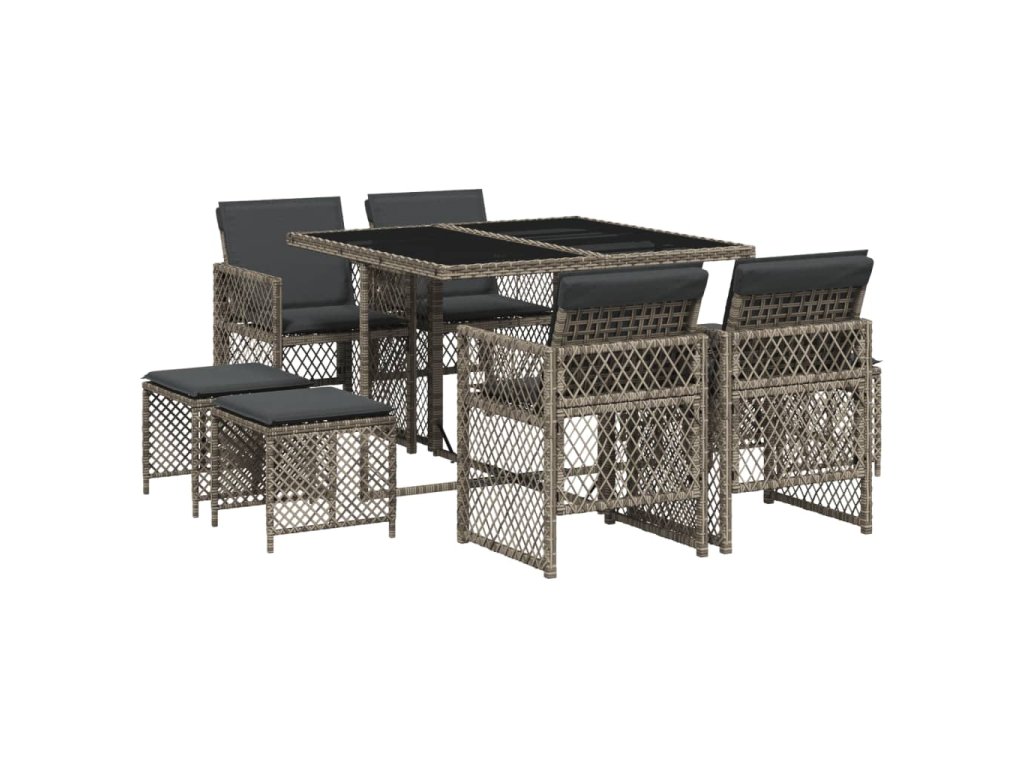 9dílný zahradní jídelní set s poduškami šedý polyratan 3210776