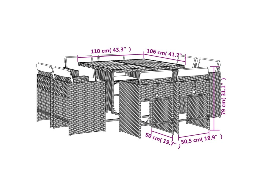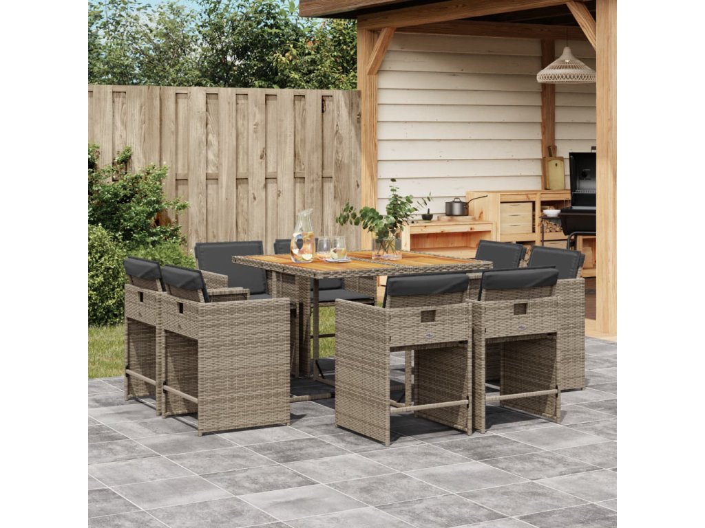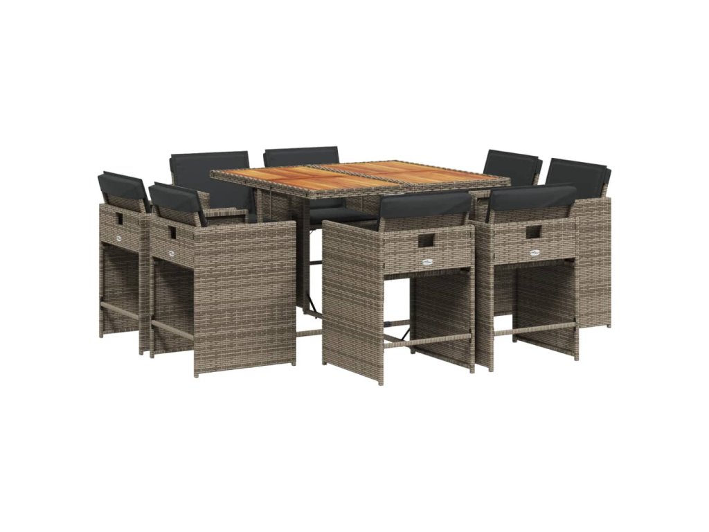 9dílný zahradní jídelní set s poduškami šedý polyratan 3211202